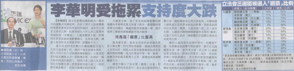蘋果 - 李華明受拖累支持度大跌