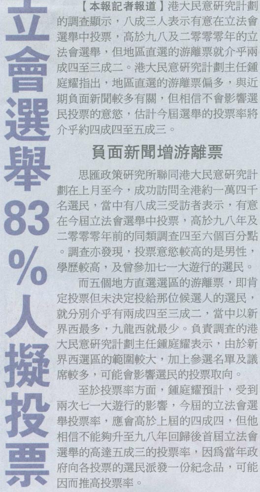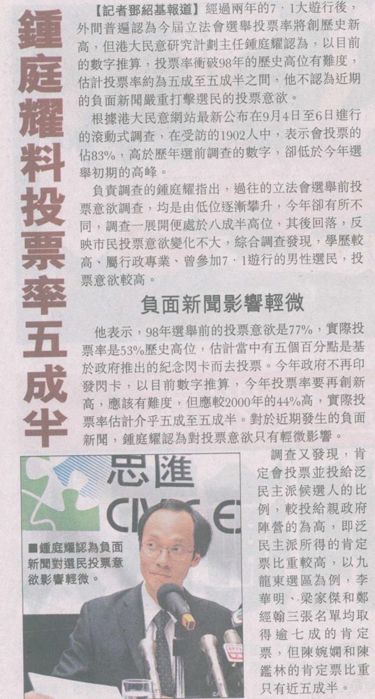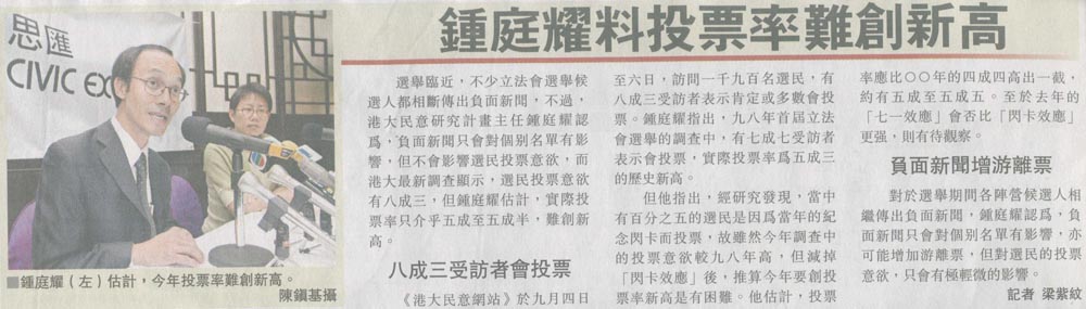 明報 - 學者料投票率逾50%