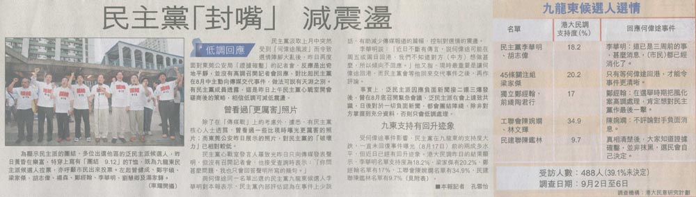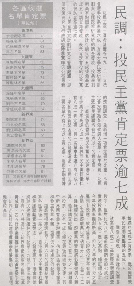 HK Economic Journal - 民調:投民主黨肯定票逾七成