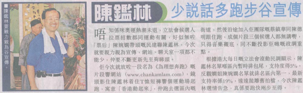 成報 - 陳鑑林 少說話多跑步谷宣傳