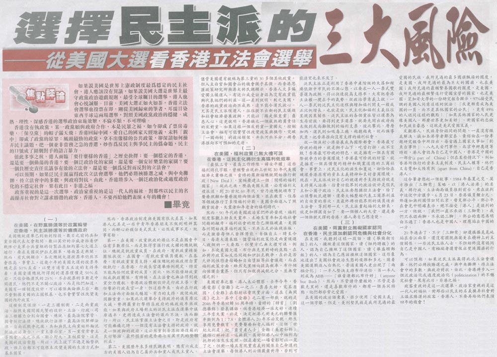 商報 - 選擇民主派的三大風險───從美國大選看香港立法會選舉