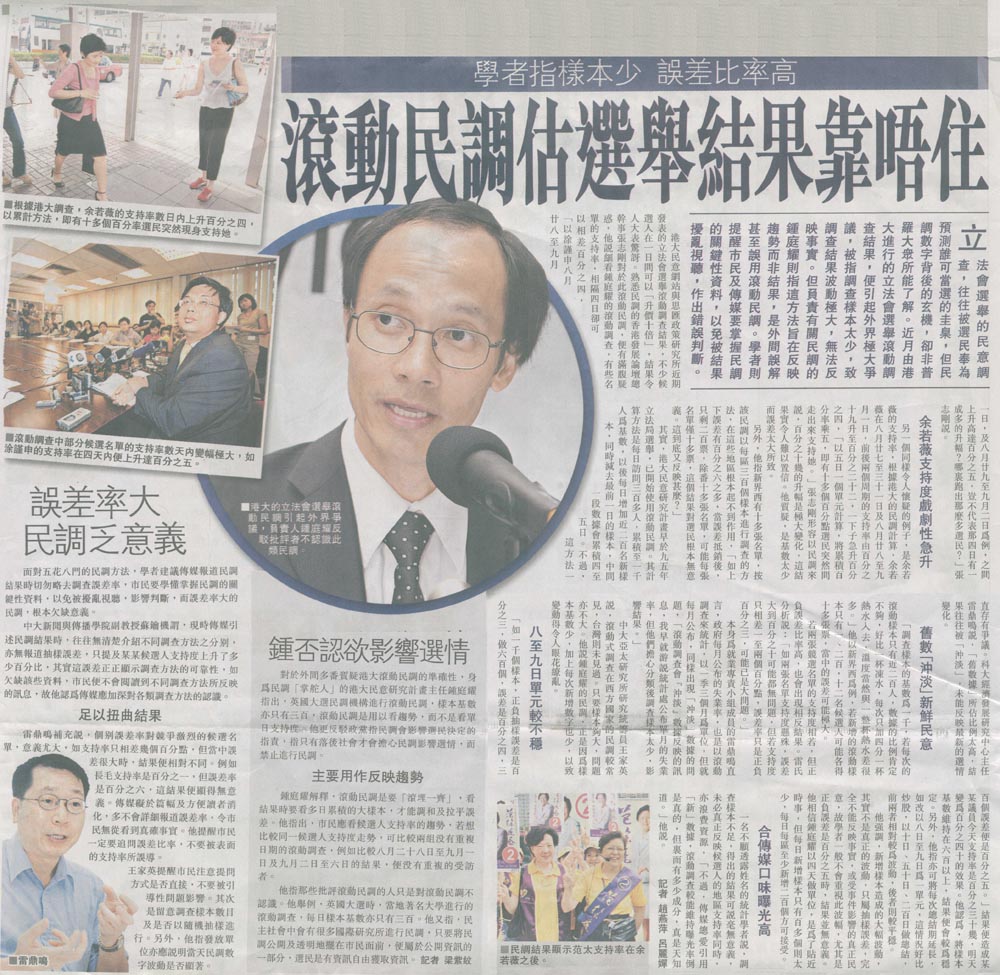星島 - 學者指樣本少誤差比率高 滾動民調估選舉結果靠唔住