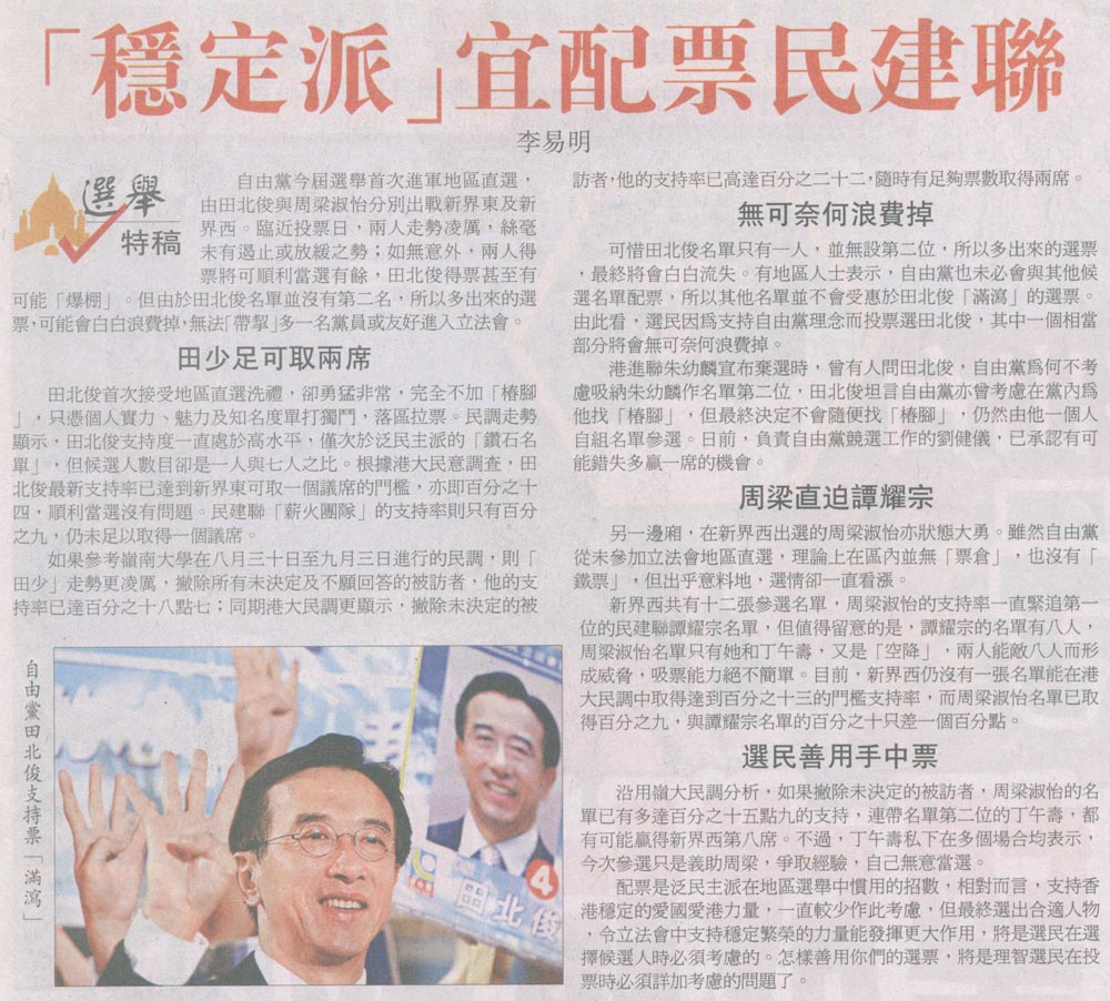 大公 - 「穩定派」宜配票民建聯