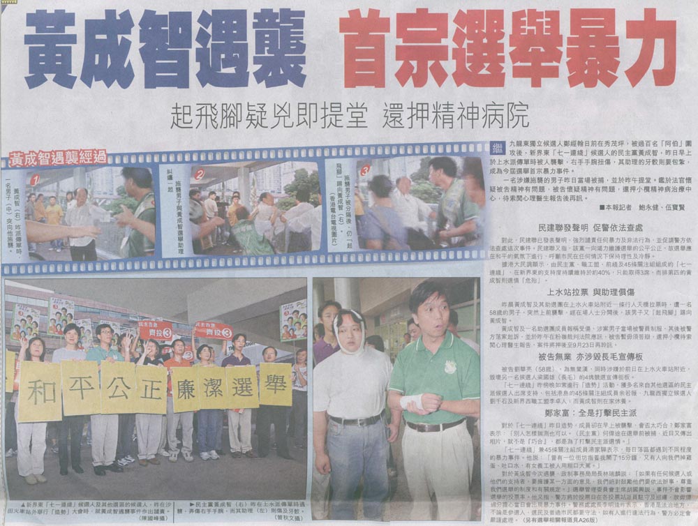 經濟日報 - 黃成智遇襲 首宗選舉暴力 起飛腳疑兇即提堂 還押精神病院