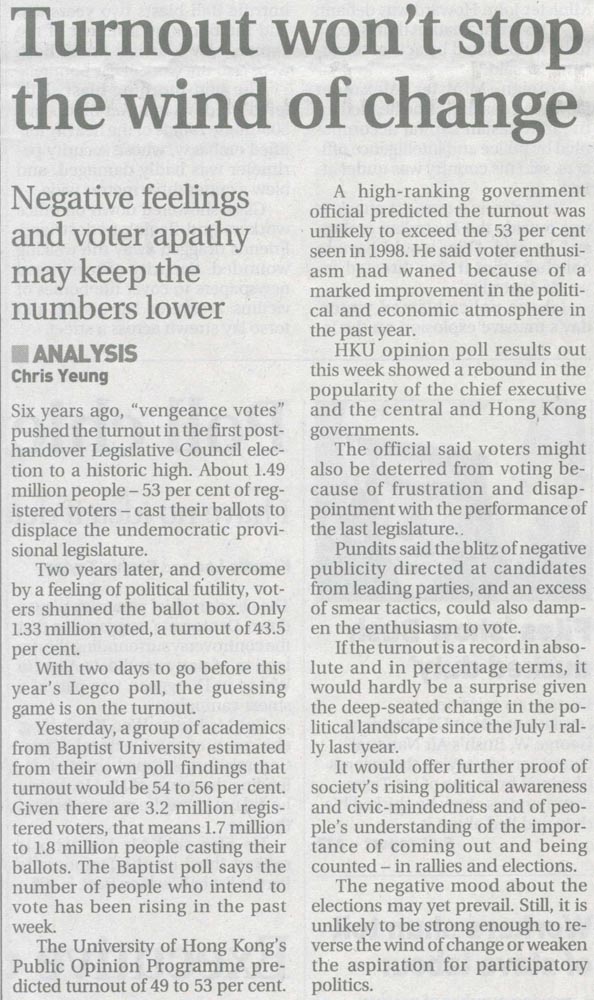 SCMP - Turnout won't stop the wind of change