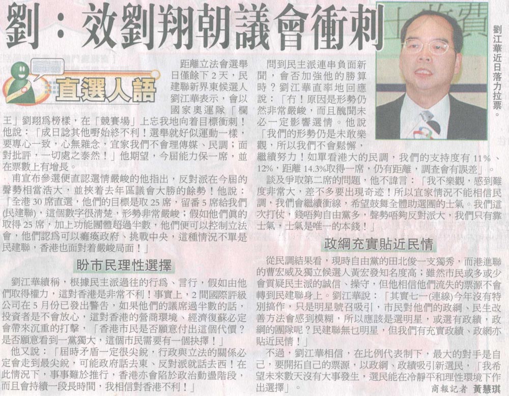 商報 - 劉:效劉翔朝議會衝刺