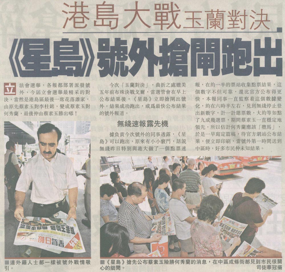 星島 - 港島大戰 玉蘭對決 《星島》號外搶閘跑出