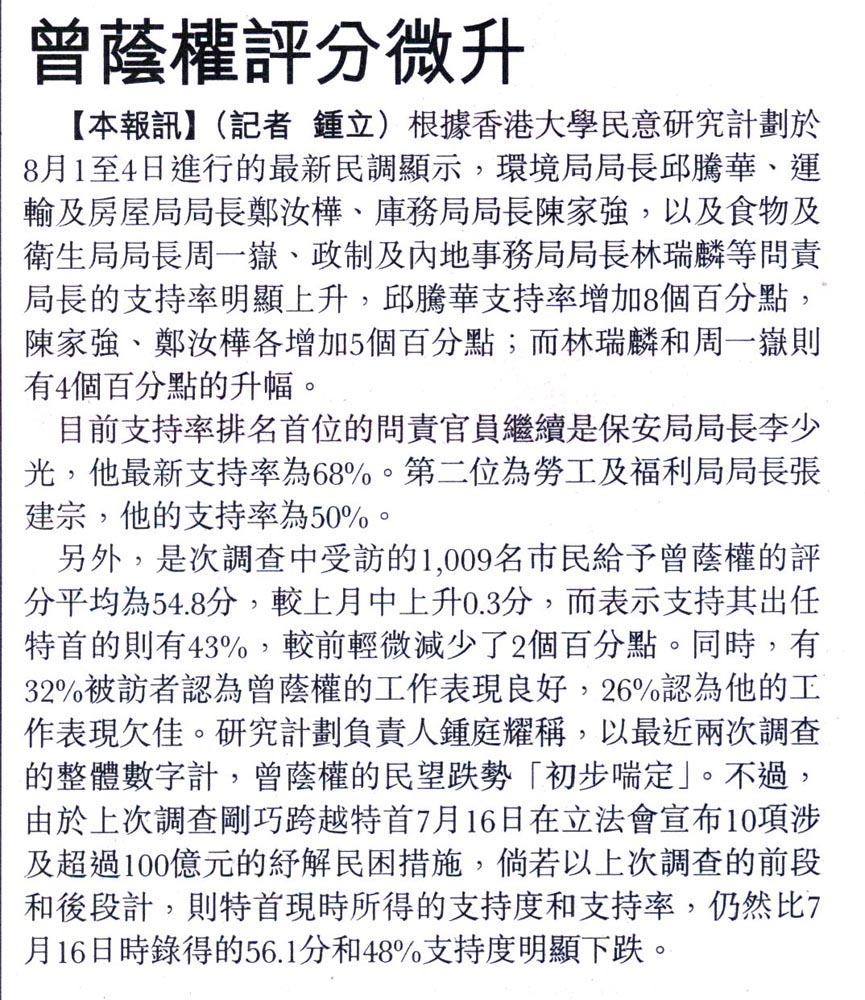 文匯 - 曾蔭權評分微升