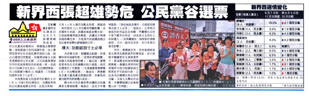蘋果 - 2008立法會選舉 新界西張超雄勢危公民黨谷選票
