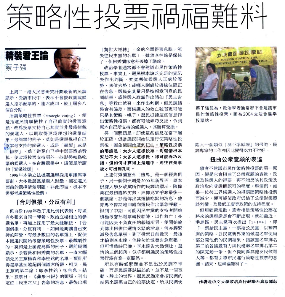 明報 - 策略性投票禍福難料