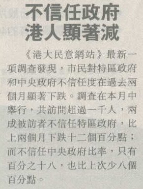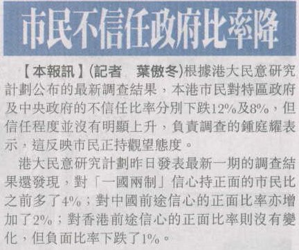 文匯報 - 市民不信任政府比率降 (20/10/2004)