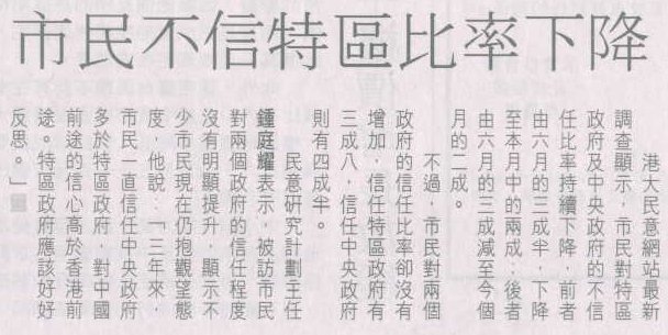 信報 - 市民不信特區比率下降 (20/10/2004)