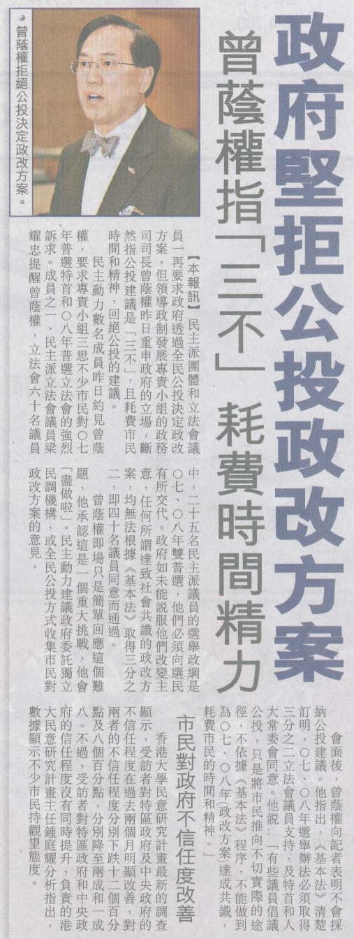 東方日報 - 政府堅拒公投政改方案 (20/10/2004)