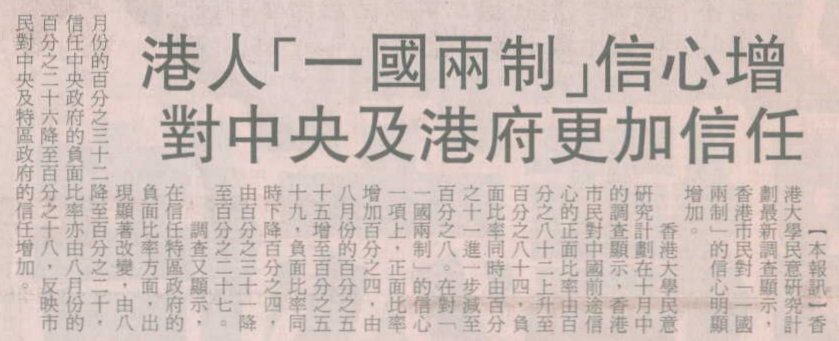 大公報 - 港人「一國兩制」信心增 對中央及港府更加信任 (20/10/2004)
