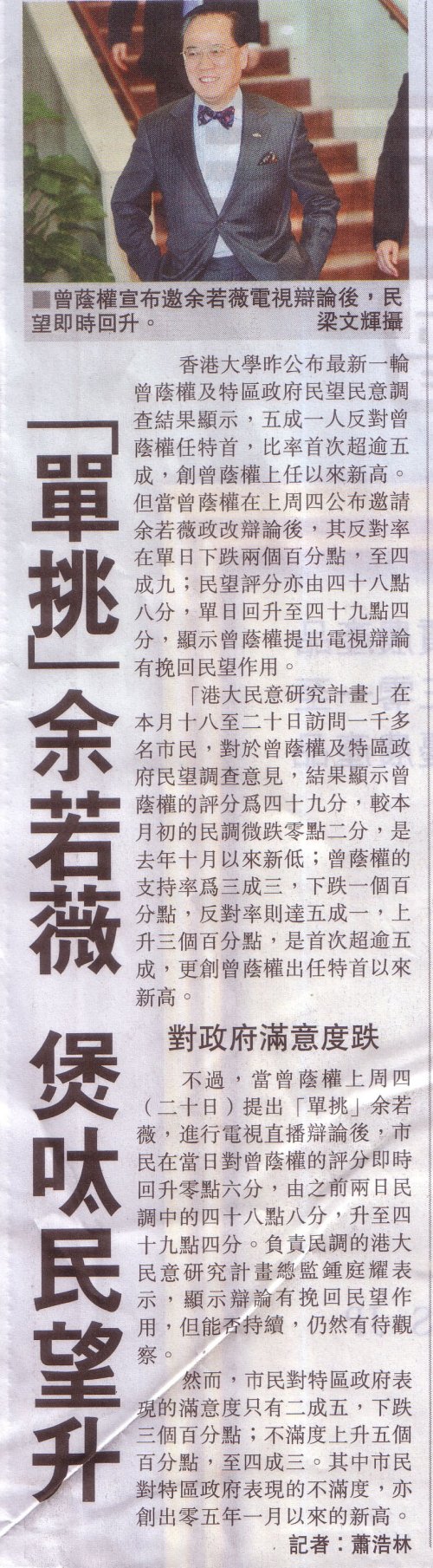 | 特首曾蔭權及特區政府的最新民望數字 - 傳媒報導 |