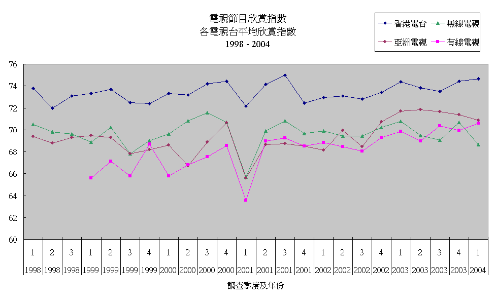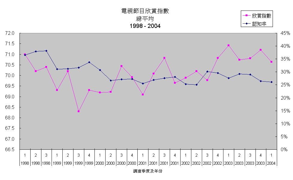各電視台平均欣賞指數及認知率 (1998 - 2004)