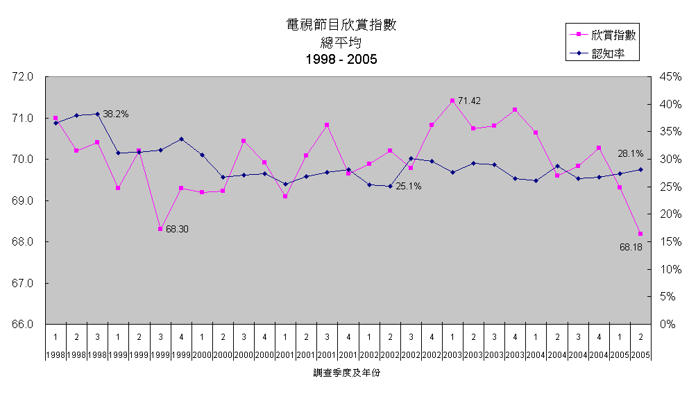 總平均欣賞指數及認知率 (1998 - 2005)