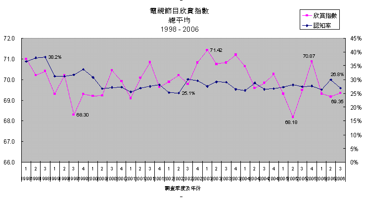 總平均欣賞指數及認知率 (1998 - 2006)