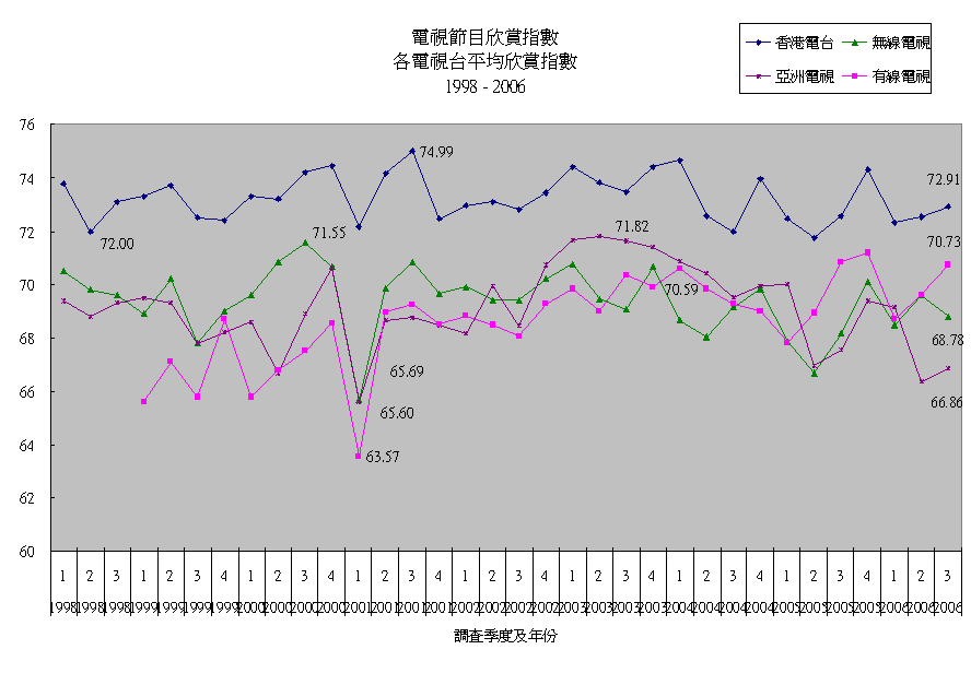 各電視台平均欣賞指數及認知率 (1998 - 2006)