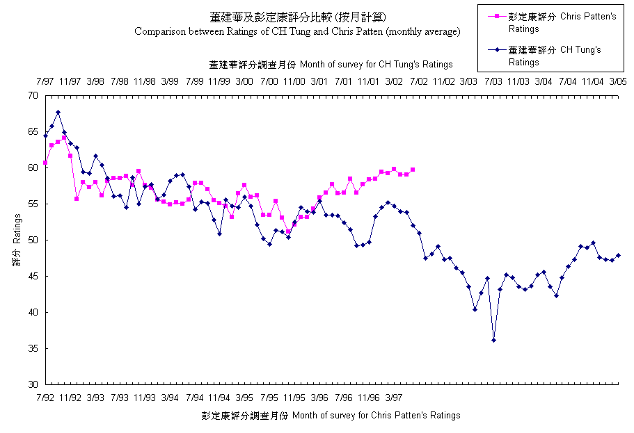 Comparison between Ratings of CH Tung and Chris Patten (monthly average)