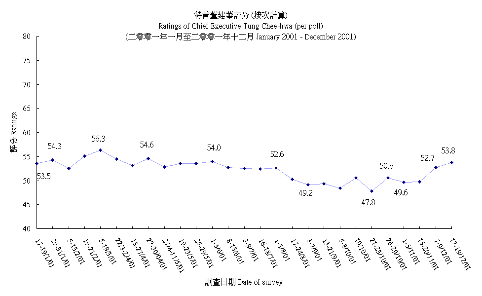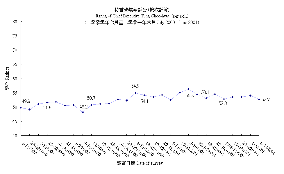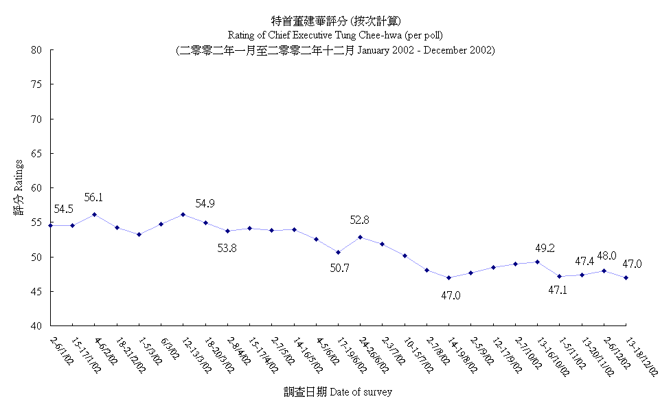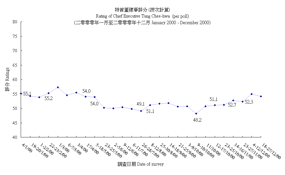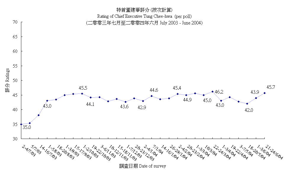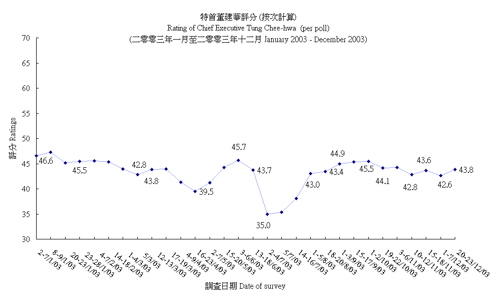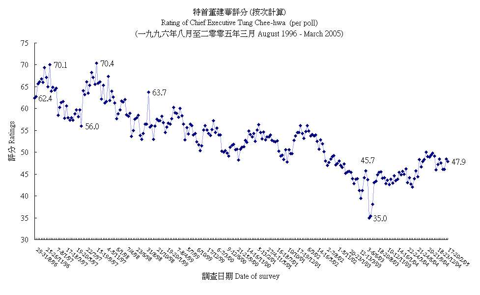Rating of Chief Executive Tung Chee-hwa (per poll)