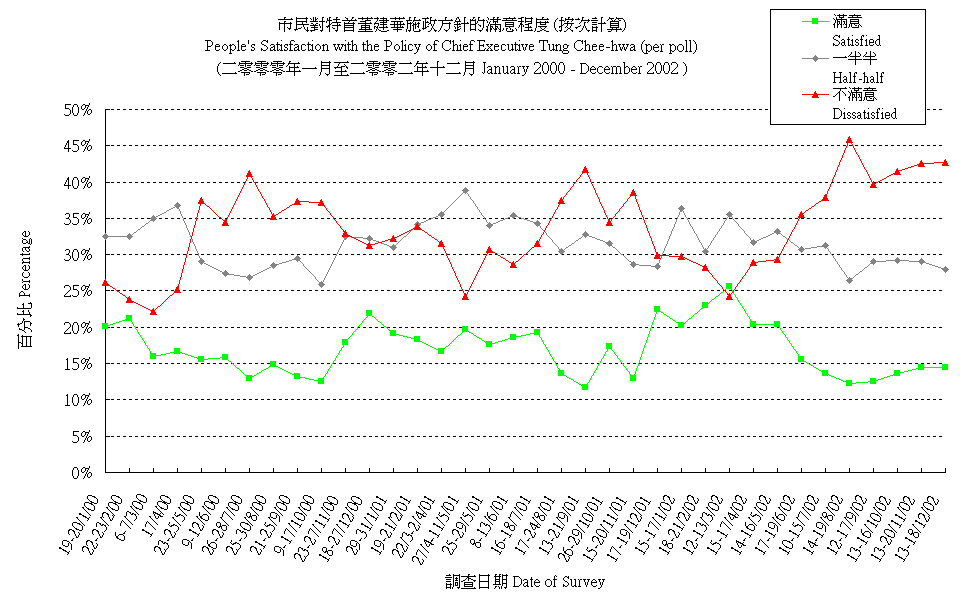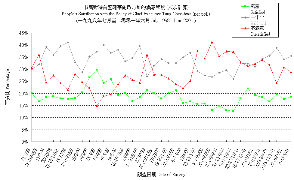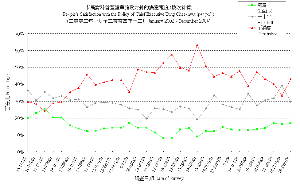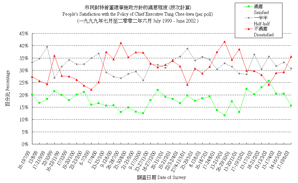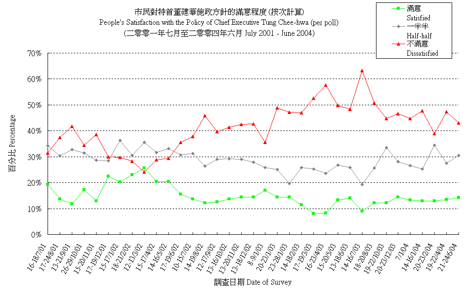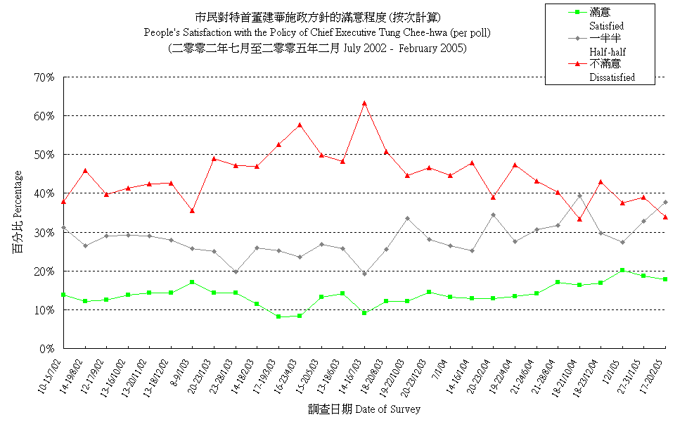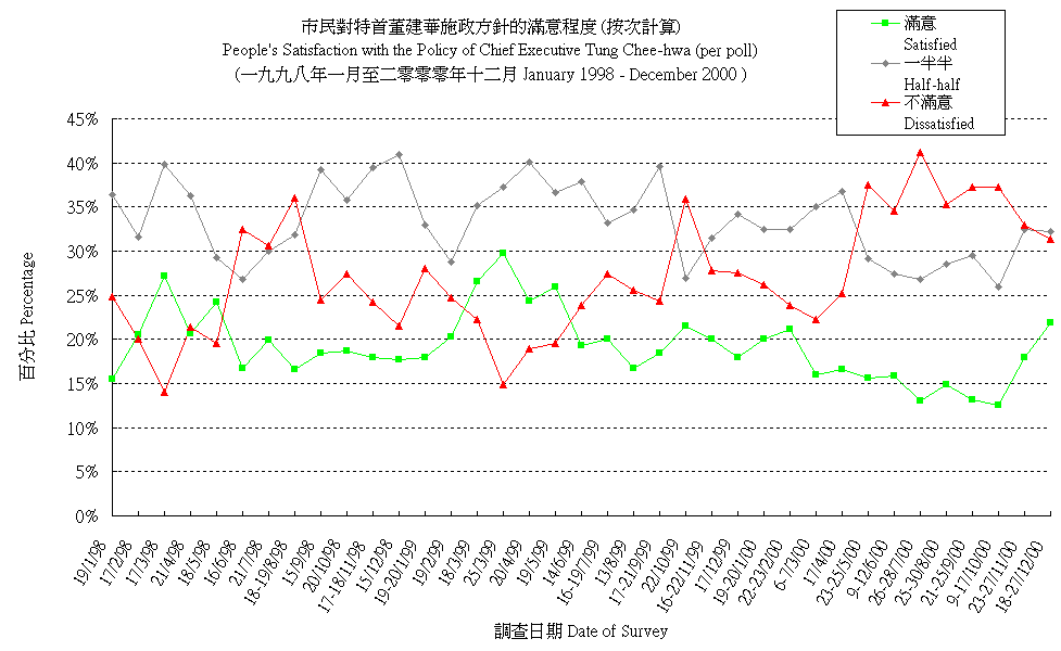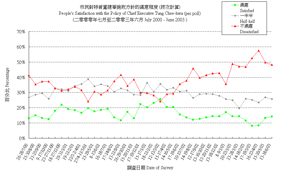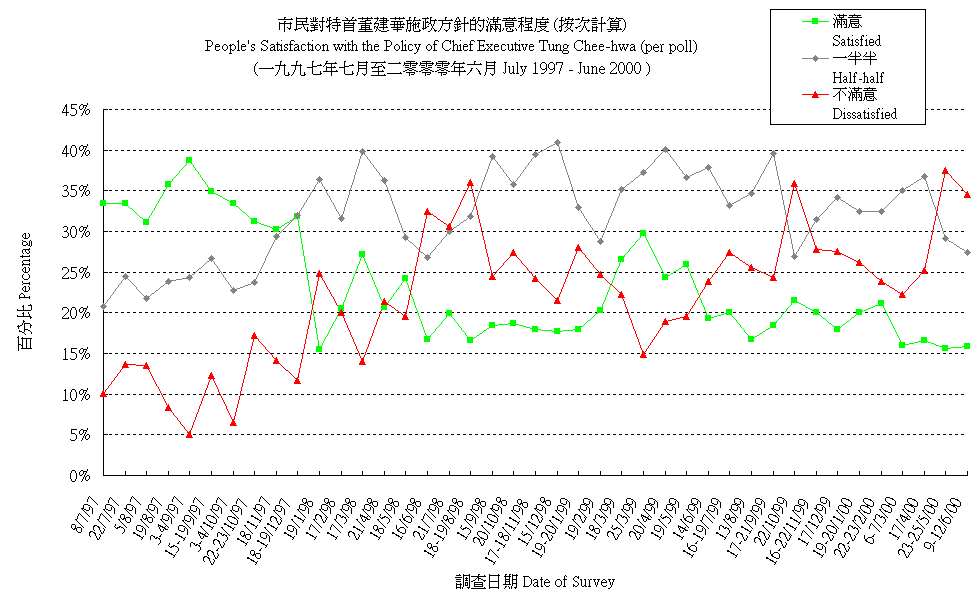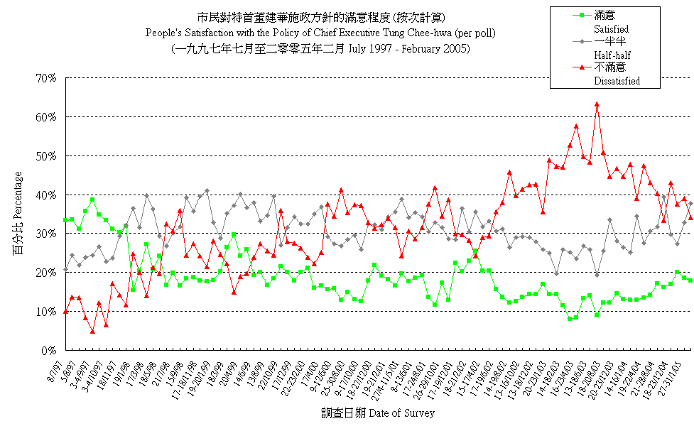 市民對特首董建華施政方針的滿意程度 (按次計算) People's Satisfaction with the Policy Direction of Chief Executive Tung Chee-hwa (per poll) |