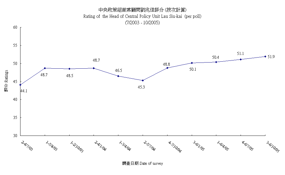 Rating of Head of Central Policy Unit Lau Siu-kai - per poll