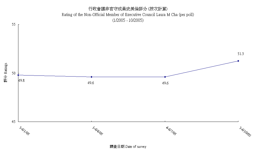 行政會議非官守成員史美倫評分 - 按次計算 Rating of Non-Official Member of Executive Council Laura M Cha - per poll |