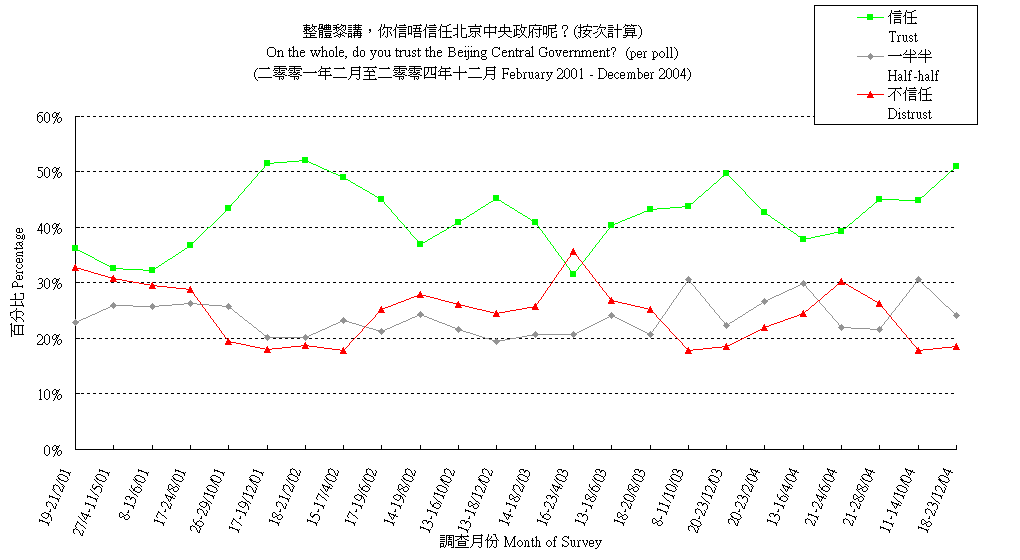 香港民眾對北京政府的信任程度 (按次計算)
