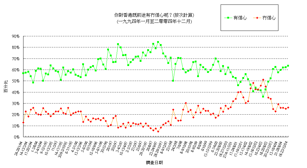 香港民眾對香港前途的信心 (按次計算)