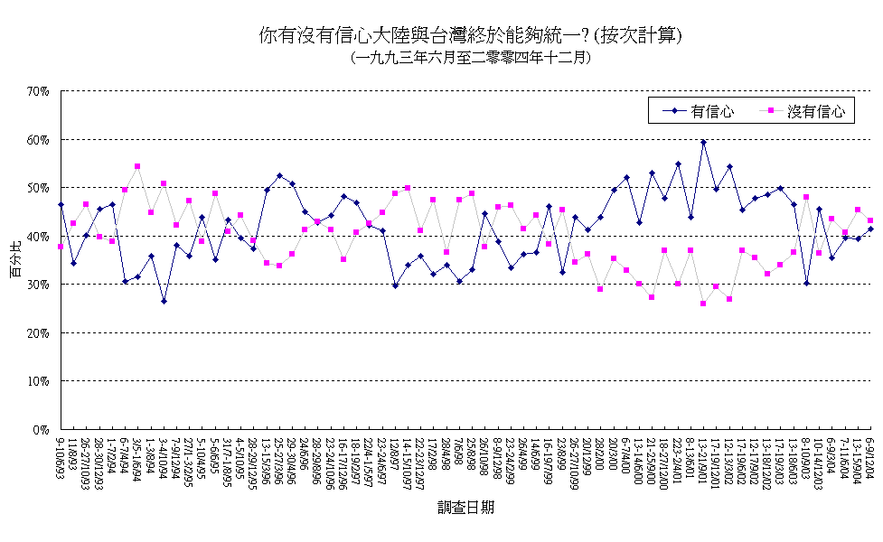 香港民眾對兩岸統一的信心 (按次計算)